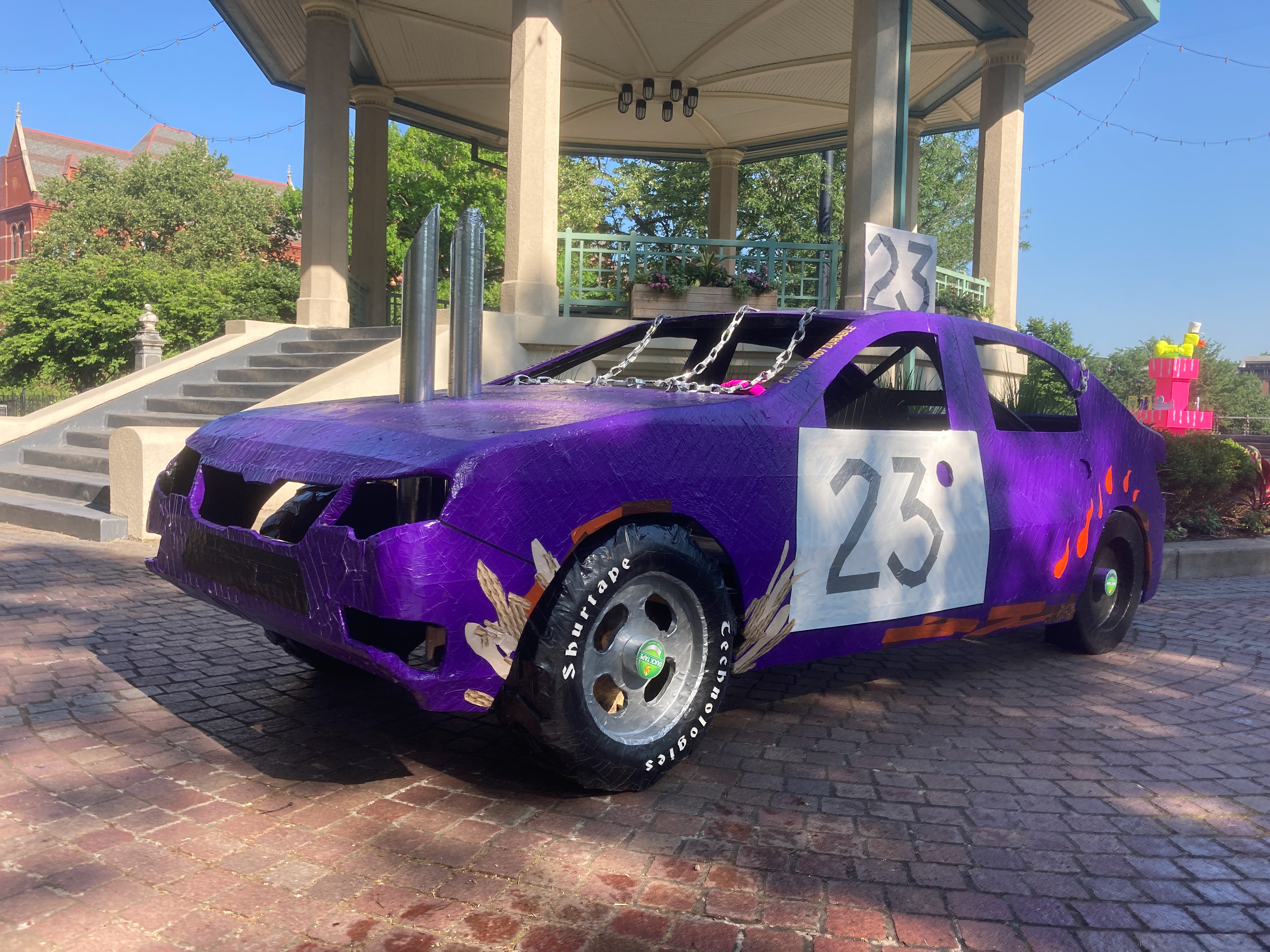 was created for the 2023 Avon Heritage festival sponsored by Duck Tape. That year's theme was Home replica transformed into a demolition derby car. Viewers were encouraged to sit in the car for photos.