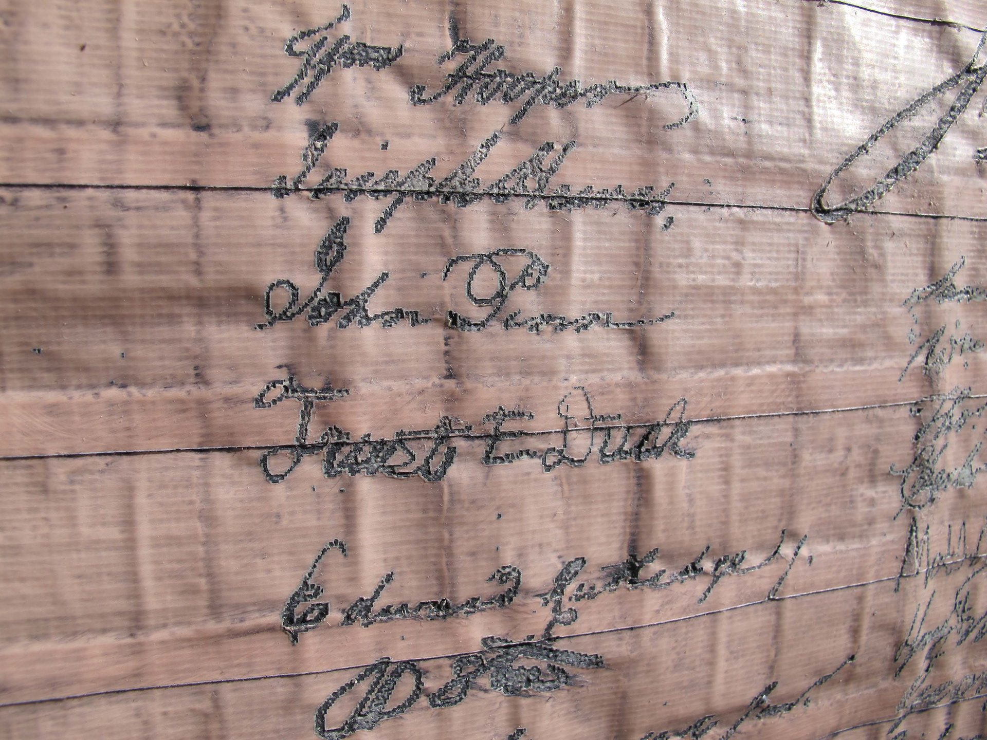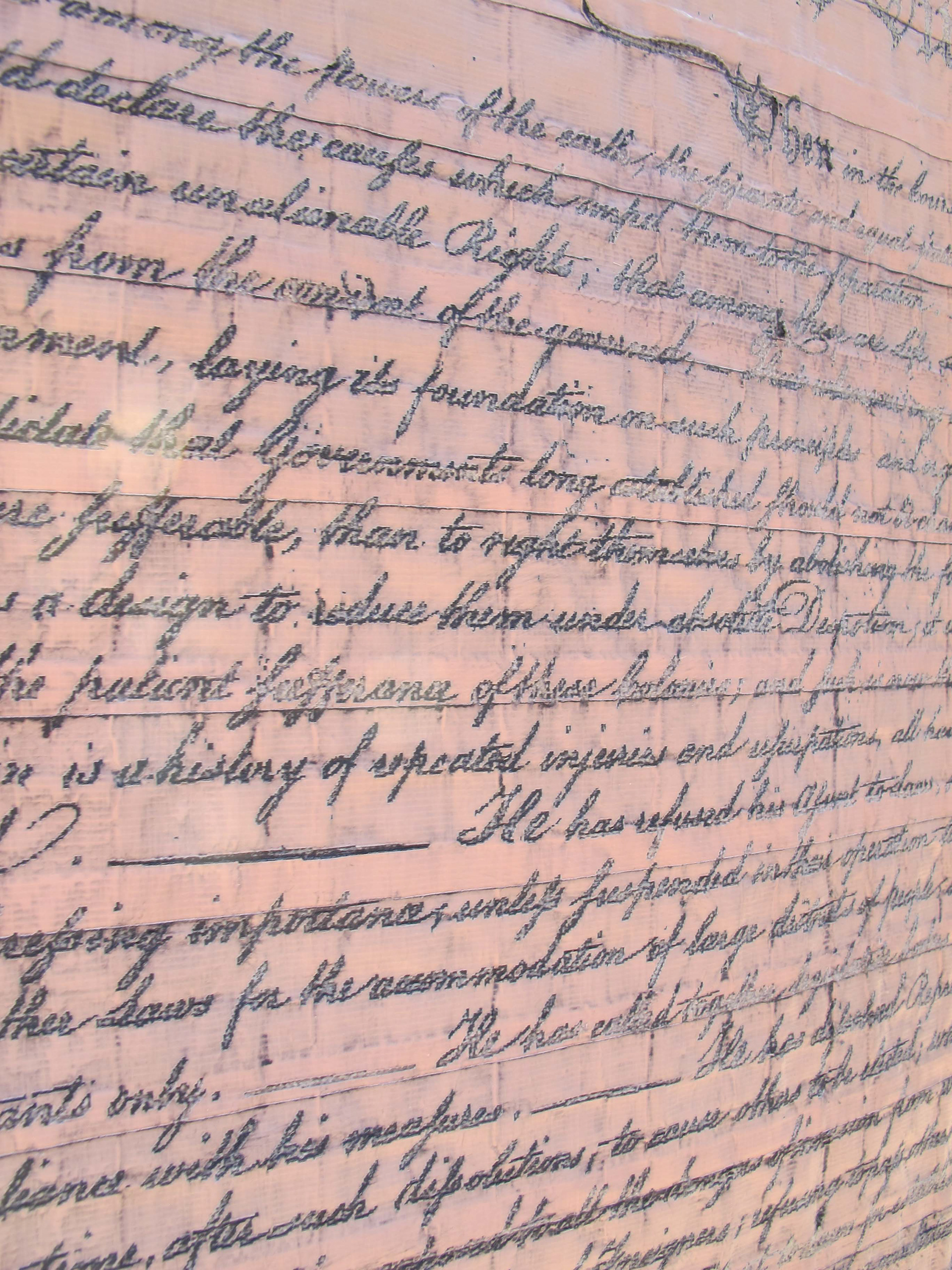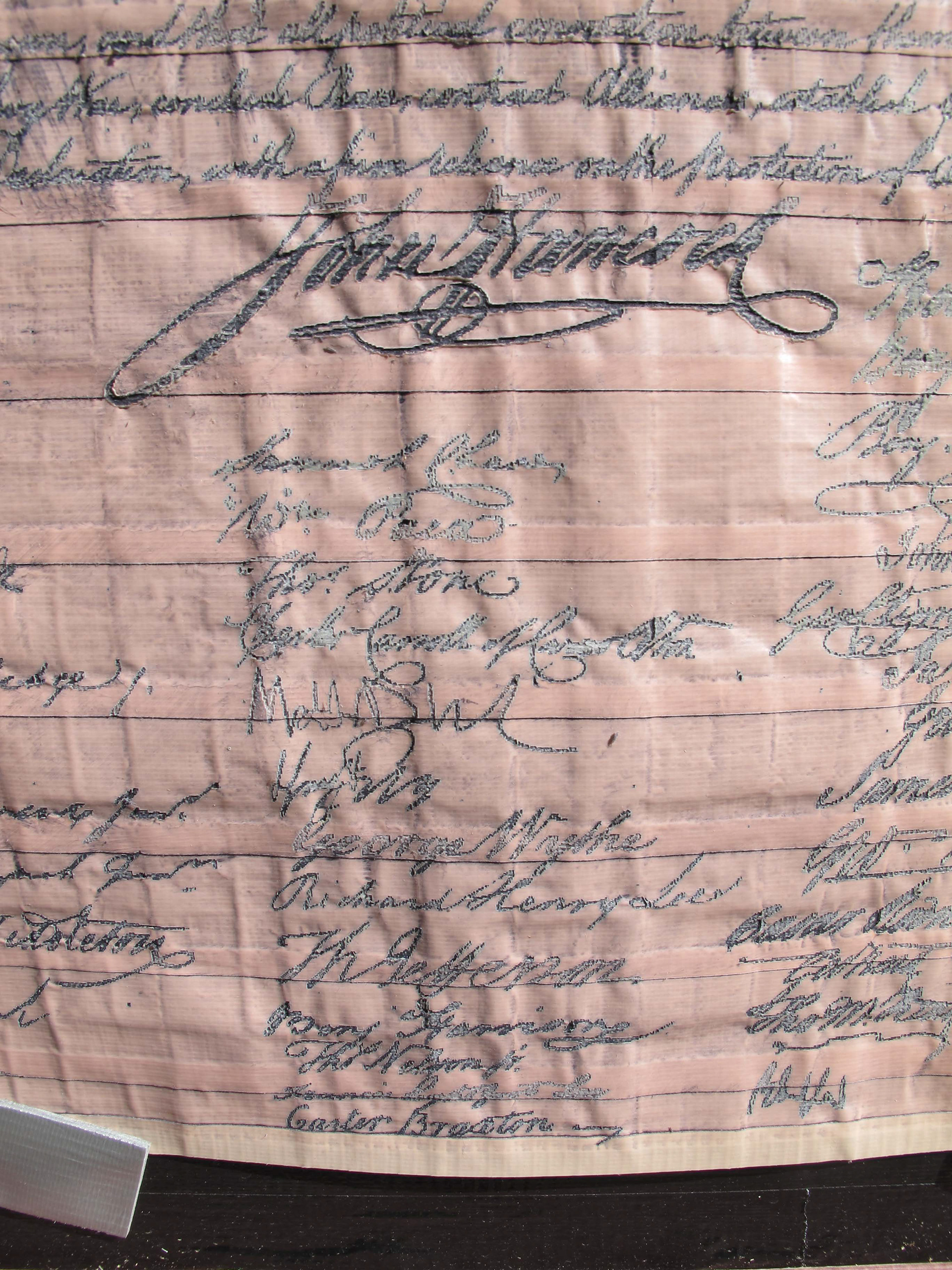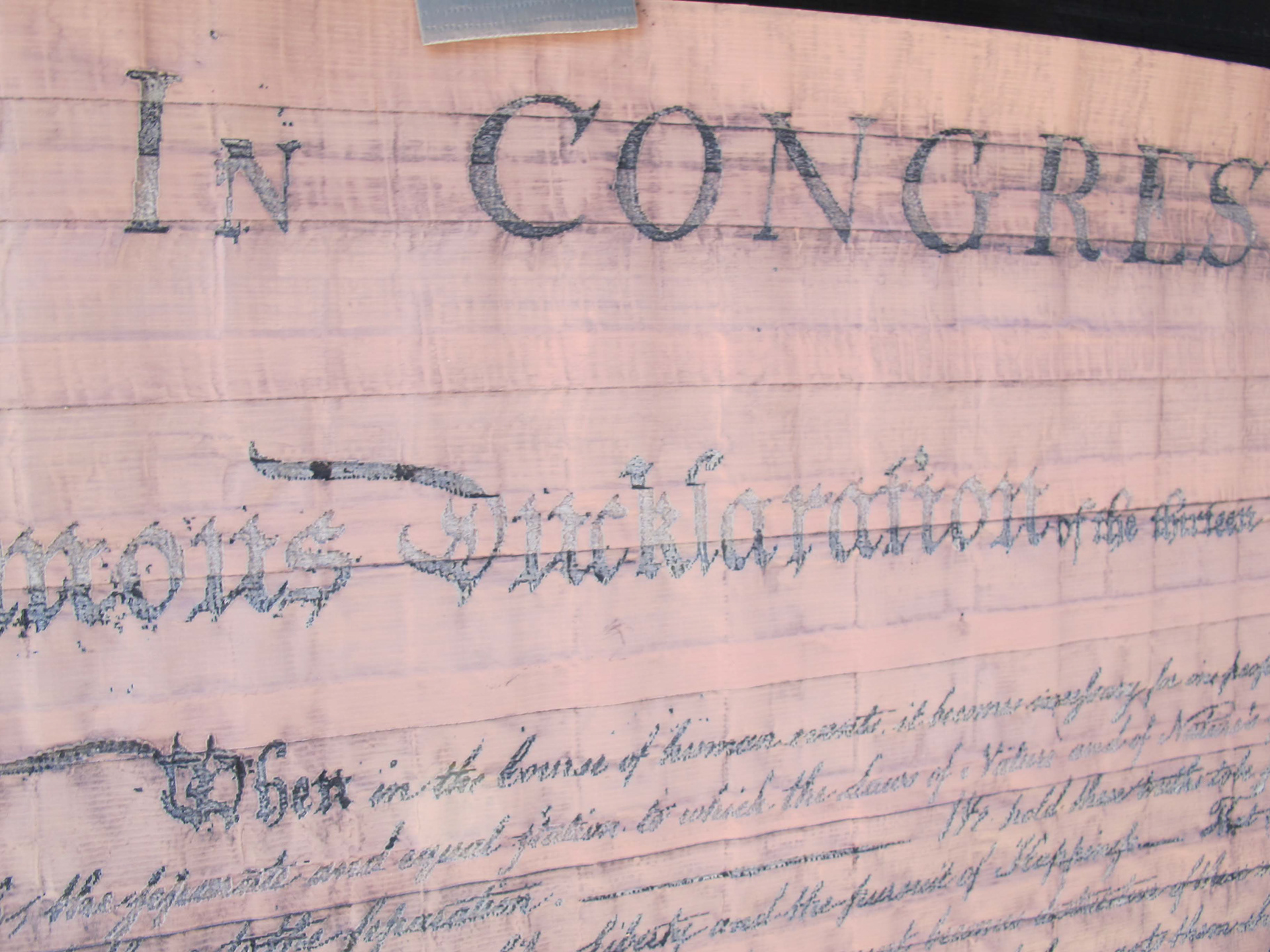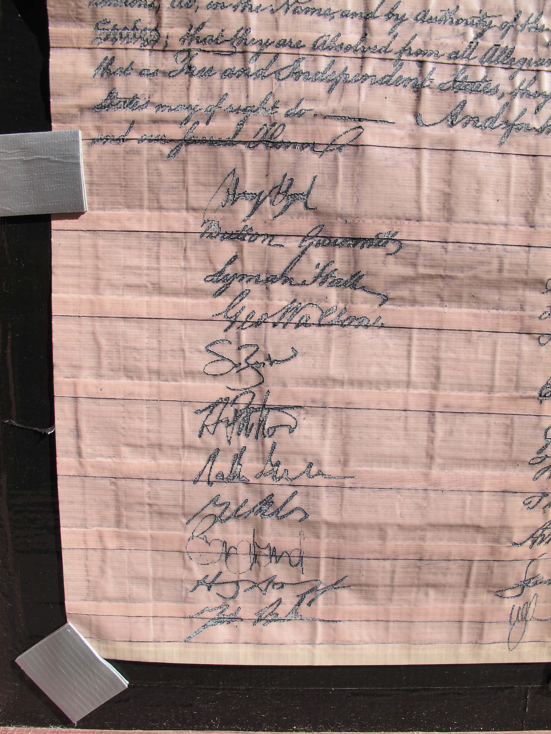 Ducklaration of Independence was created for the 2016 Duck Tape festival. That year's theme was Americana. The Duclaration is a hi resolution scan of the source document with the addition of Trust E. Duck's and members of the class's signatures. The tape document was laser engraved and presented in the direct sun.