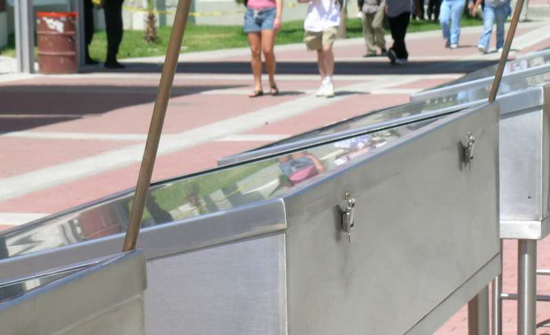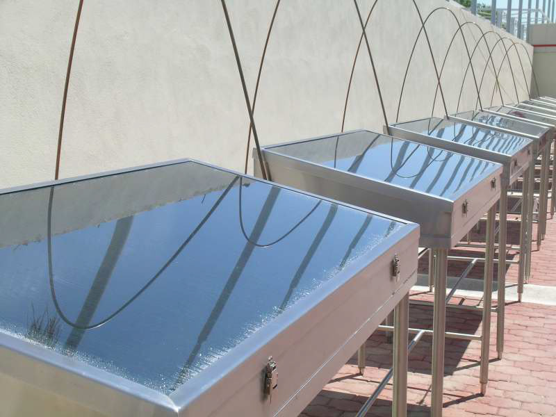 SIMPARCH examined the striking disparity of water availability and purity in the city of Tijuana, an urban region sharply divided by the border between Mexico and the U.S. At once art intervention, public architecture, and independently initiated infrastructure, the Dirty Water Initiative brings to light the growing dilemma of water, which is polluted, scarce, bottled, privatized, and wasted. The public exhibit consisted of an array of solar stills, a contaminated supply of water, containers for clean water, pipe and fittings. The stills were connected in series, which created a mini water purification plant along the pedestrian walkway after entering Mexico from the U.S. This gesture of purifying water directly challenged the cliche, "don't drink the water". Using the simple concept of solar water distillation, the Dirty Water Initiative utilized the sun in heating contaminated water in glass-covered basins. This, now potable, water flowed down a channel where it collected in a series of common water vessels, making it a very slow and hermetic public fountain.