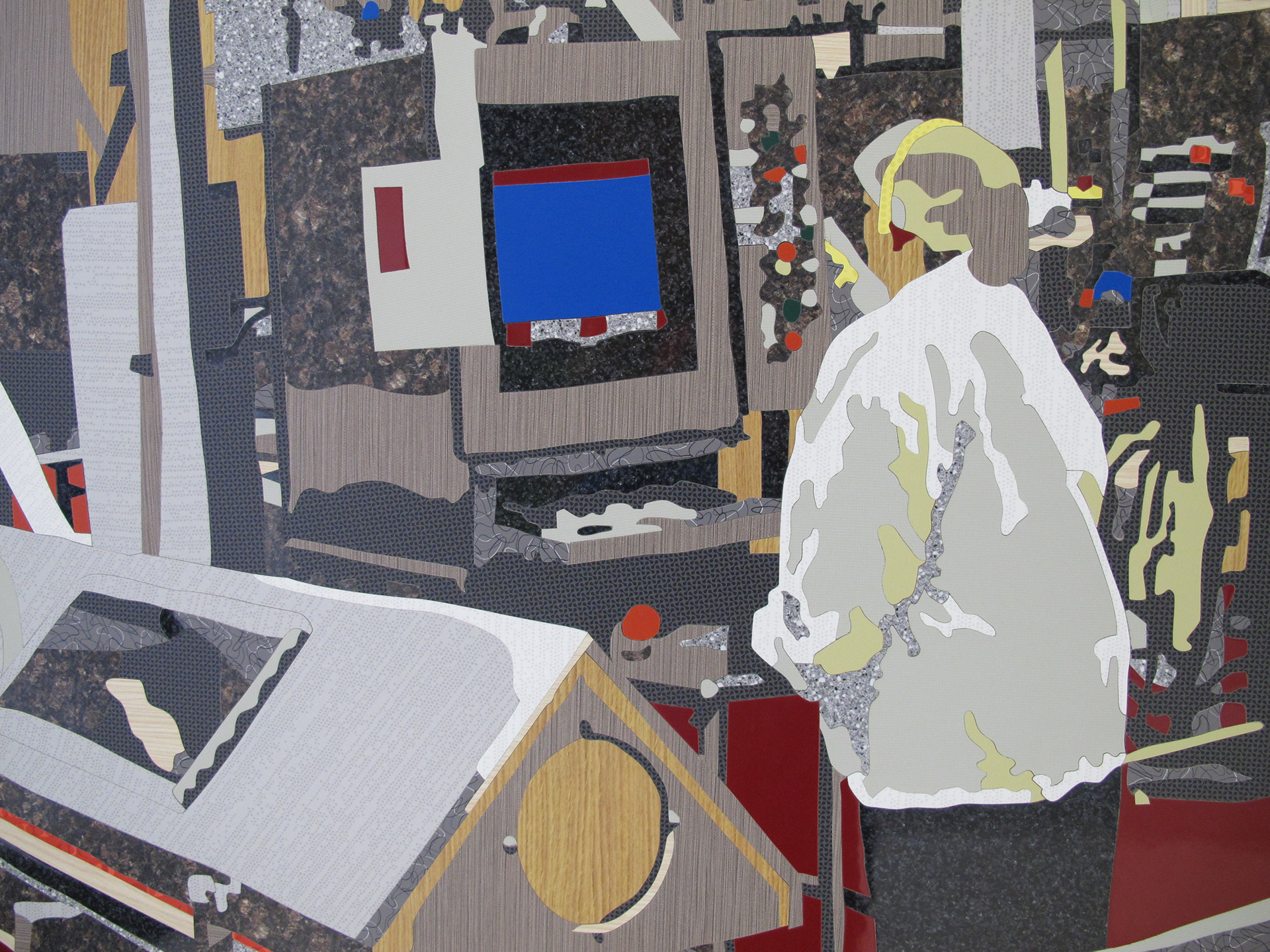 This mosaic depicts Joanna Johnson (left) and Fran Dodson (right) monitoring two large mixing machines that are whipping up taffy before it is sent to a long conveyor that presses and cools the product before packaging. The mixers have a capacity of about 3,000 pounds