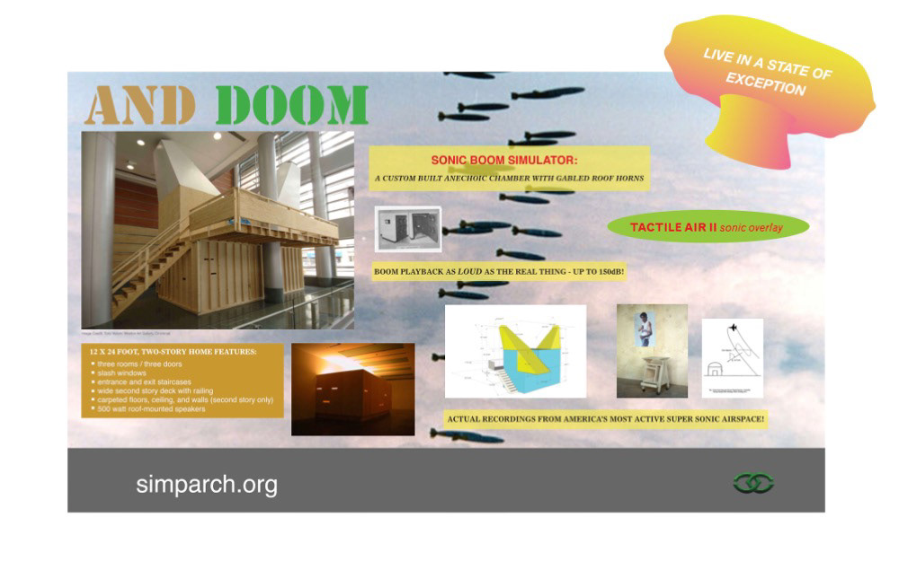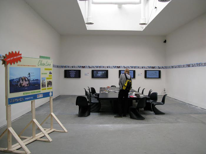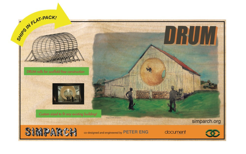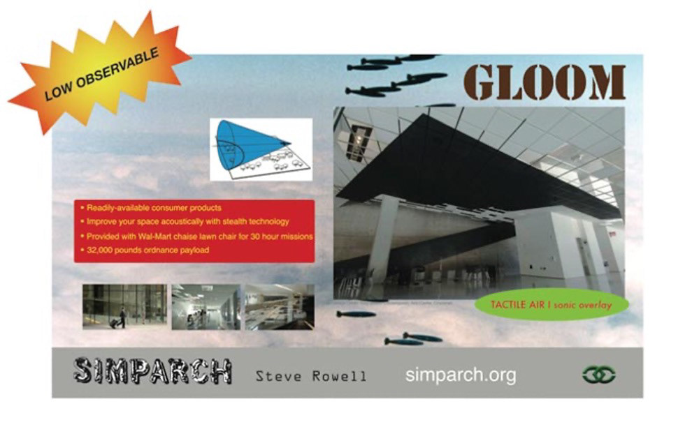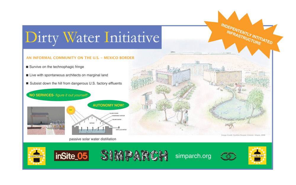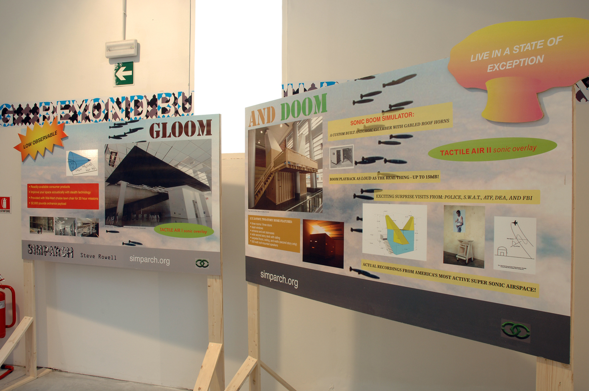 SIMPARCH's contribution to Out There consisted of a series of real estate signage depicting past and future projects. Installed throughout the exhibition, the signs promoted the benefits of SIMPARCH's projects. The claims made by the signs ranged from practical and realistic to far-fetched and satirical